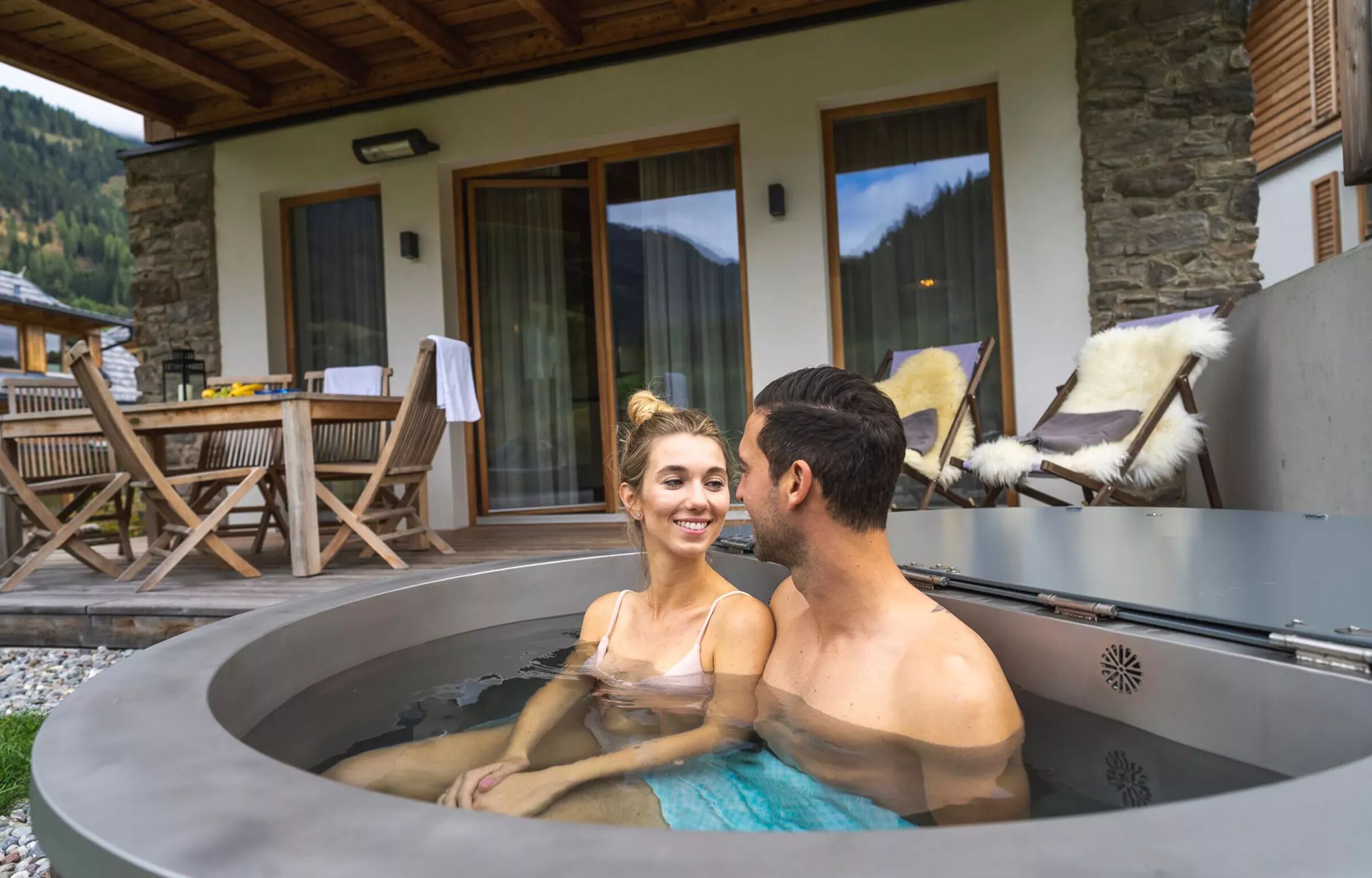 We put great value on luxury in Trattlers Hof-Chalets. You can enjoy a magnificent view of the Nockberg Mountains while you sit in your private sauna. Afterwards you can cool down in your outdoor-tub. This one is of course heated and usable during winter and summer...